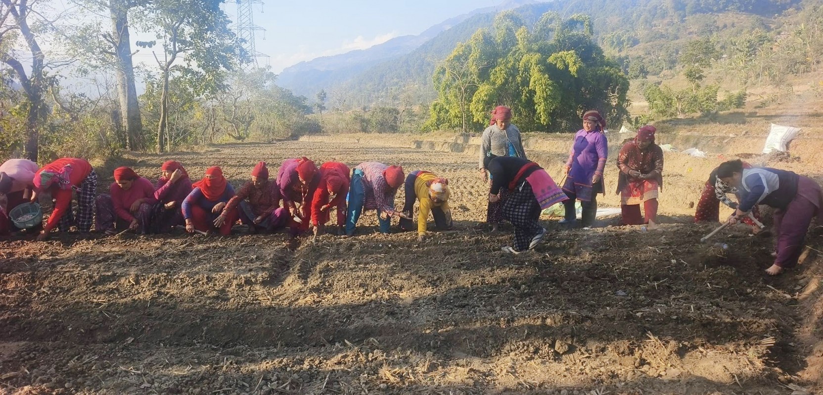 रामचाेकबेसीका महिला सामूहिक लसुन प्याज खेतीमा, चितीमा बाँझो जग्गाको सदुपयोग बढ्दाे