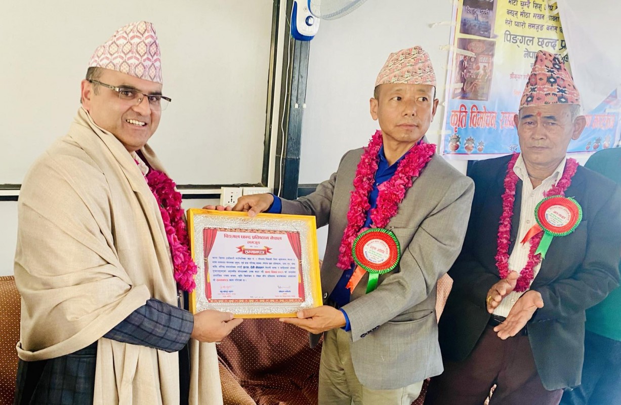 वरीष्ठ समालाेचक, प्रा.डा. देवी नेपाल लमजुङमा सम्मानित, पिङ्गल छन्द प्रतिष्ठानमा पुनः न्याैपाने