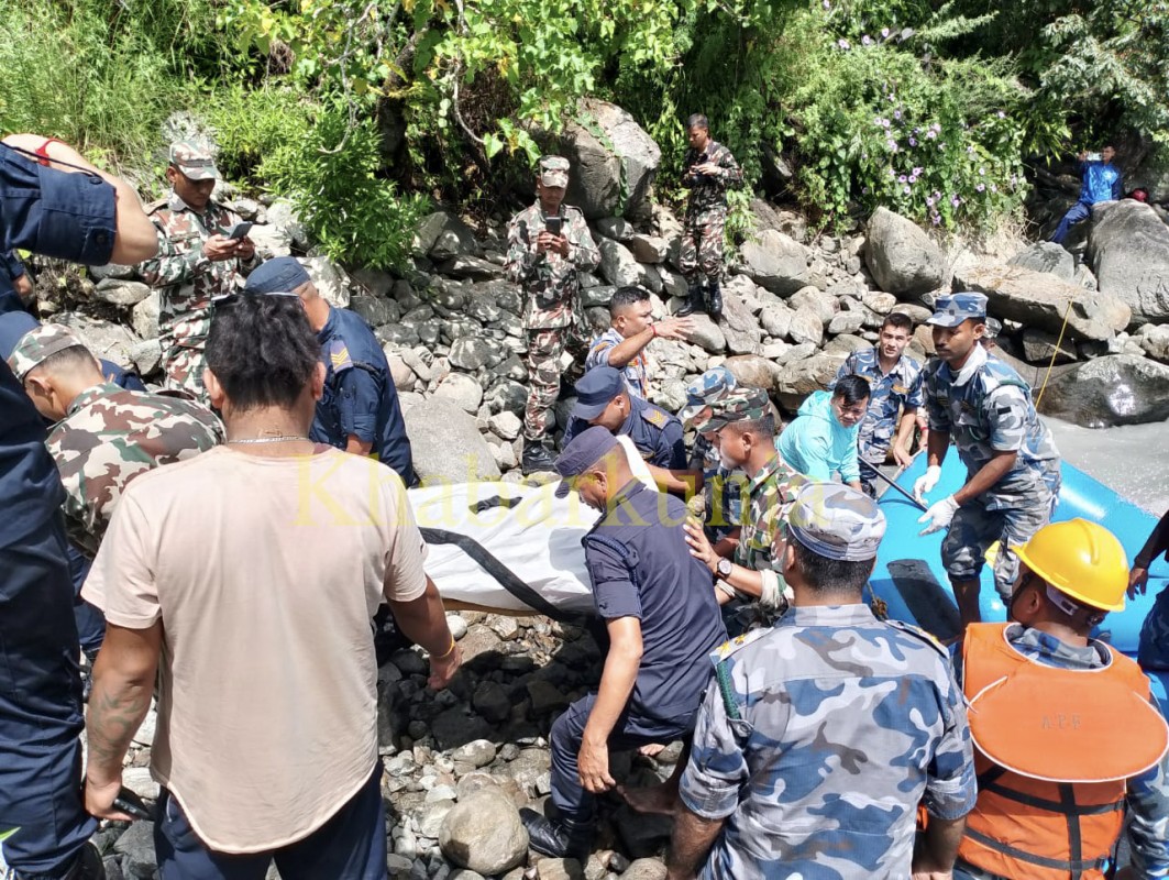 मर्स्याङदीमा बेपत्ता बसचालककाे शब भेटियाे, शसस्त्र प्रहरीकाे गाेताखाेर टाेलीद्वारा उद्धार