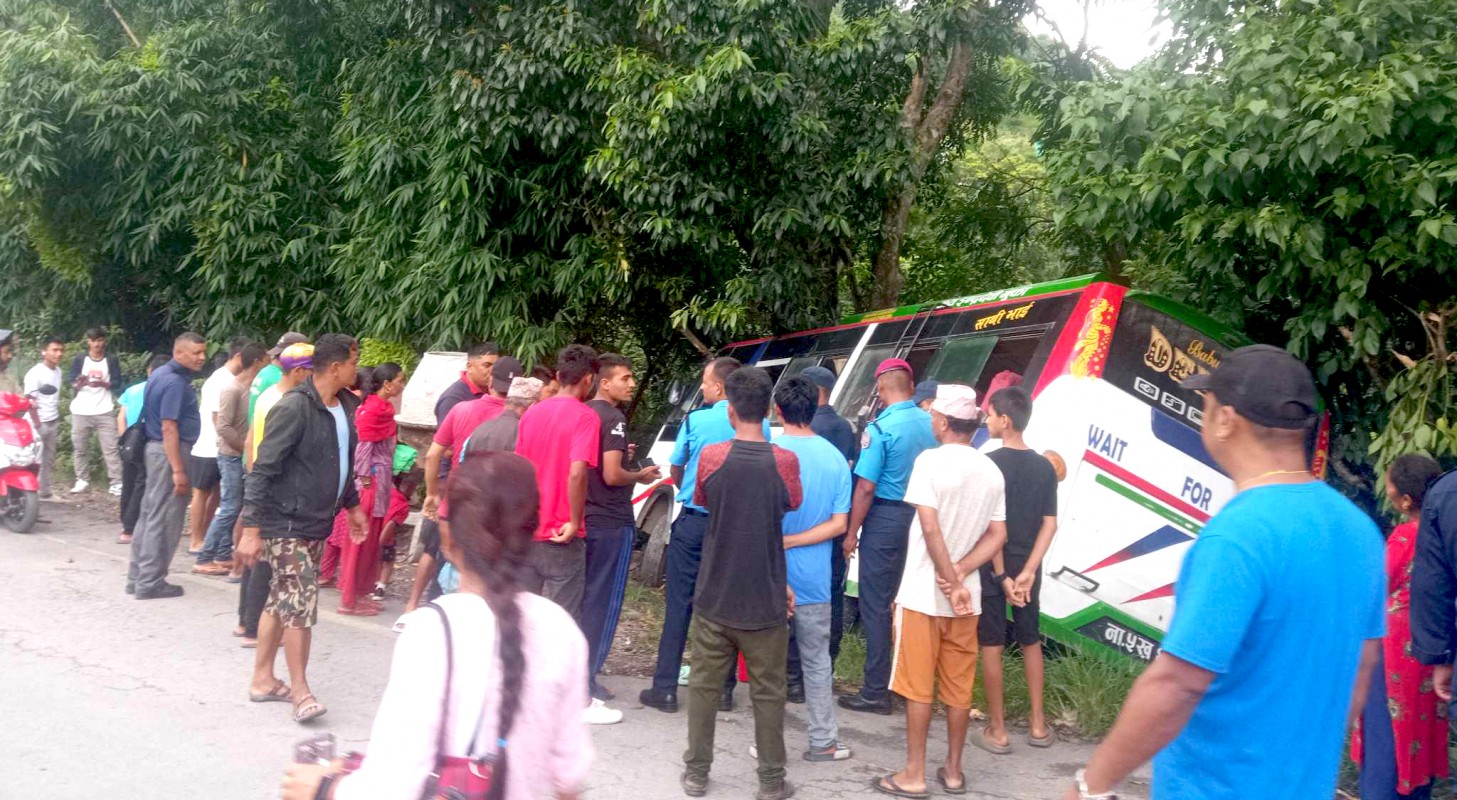 राेकिराखेकाे बस एक्कासी गुडेर दुर्घटना हुँदा ६ जना घाइते, एककाे अवस्था गम्भीर