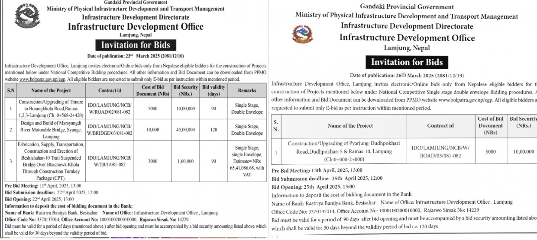 बेसीशहर, चैत २० । पूर्वी लमजुङको प्यारजुङ–दूधपोखरी सडक कालोपत्रे हुने भएको छ । गण्डकी प्रदेश सरकारले उक्त सडकका लागि बजेट विनियोजन गरेर ठेक्का आह्वान भएसंगै राइनास नगरपालिका–१० प्यारजुङ र दूधपोखरी गाउँपालिका–५ गौंडा जोड्ने प्यारजुङ–दूधपोखरी सडक कालोपत्रे हुने भएको हो ।