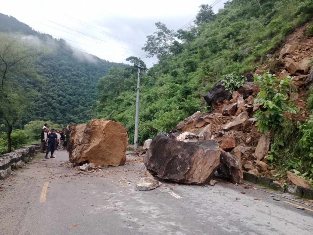 ट्राफिक प्रहरी कार्यालयले सडककाे पहिराे हटाउने कार्य भइरहेकाे र केहीबेरपछि दुइतर्फी यातायात सञ्चालन हुने जानकारी दिएकाे छ ।