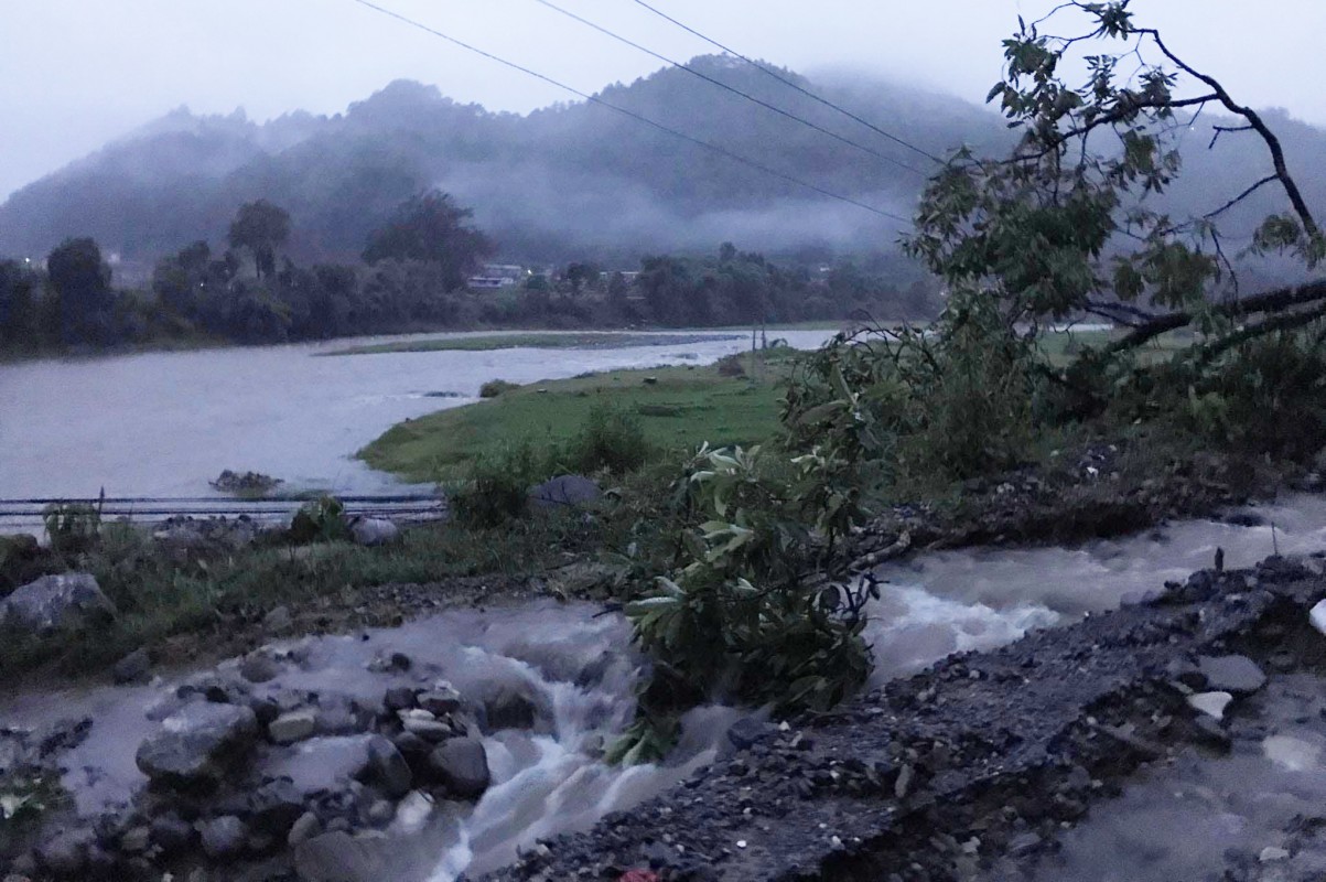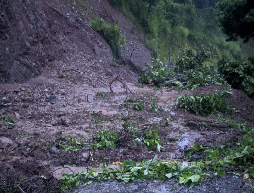 लागतारकाे बर्षाले मध्यपहाडी लाेकमार्गमा क्षति, सडक अबरूद्ध