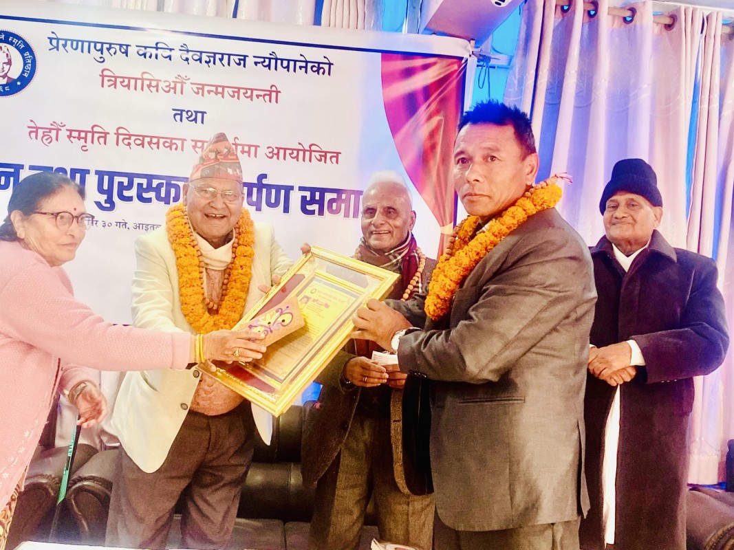 साहित्यकार श्रीकृष्ण न्यौपानेलाई दैवज्ञ साहित्य पुरस्कार अर्पण