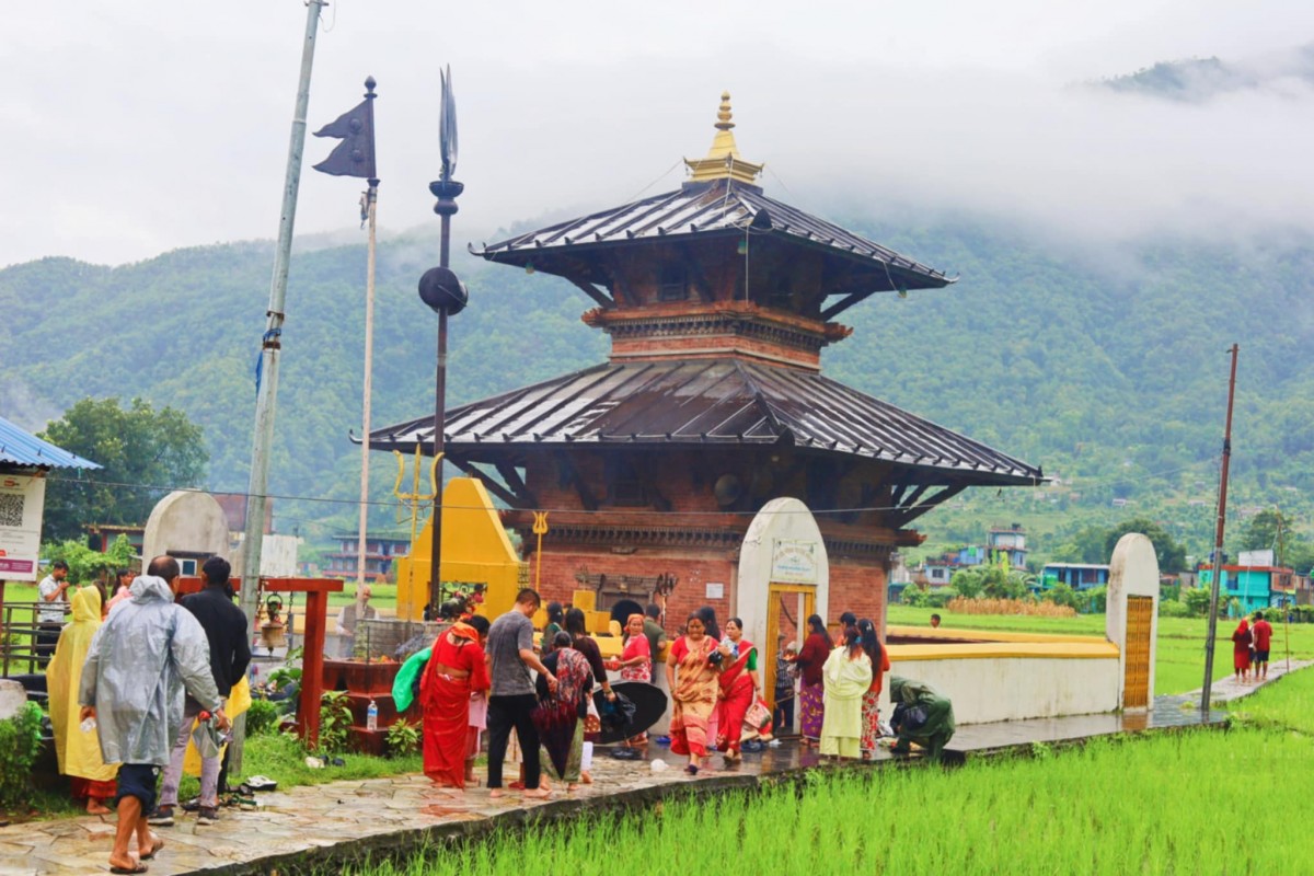 साउनकाे पहिलाे साेमबार ईशानेश्वर महादेव मन्दिरमा भक्तजनहरूकाे घुइँचाे