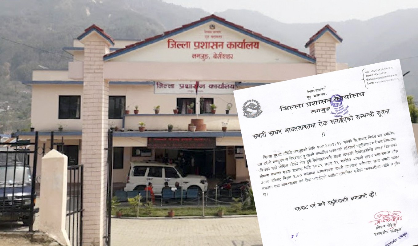 बेसीशहर चामे सडककाे लमजुङ खण्डमा पनि राति सवारीसाधन चलाउन रोक